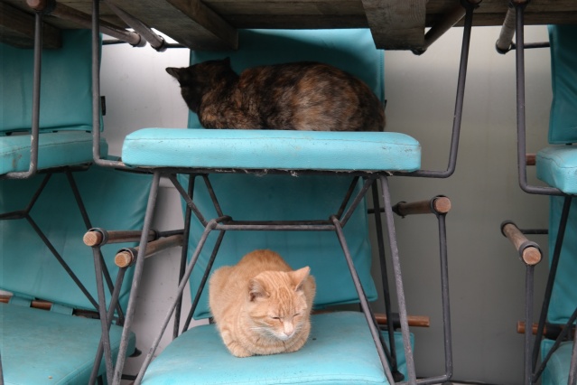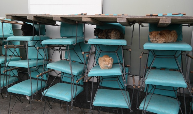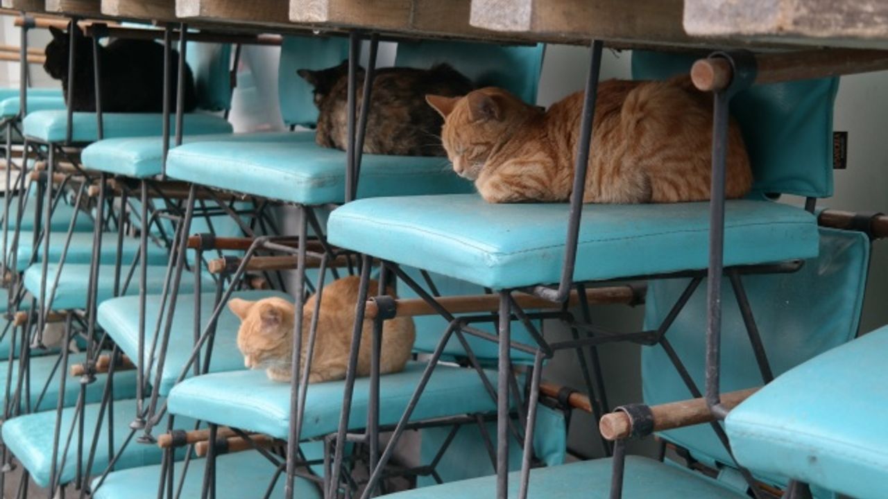 Kafenin içerisine girmelerinin yanı sıra üst üste dizilen ve kullanılmayan sandalyelerin üzerine yatan kediler, görenlerin içini ısıtan görüntüler oluşturdu.