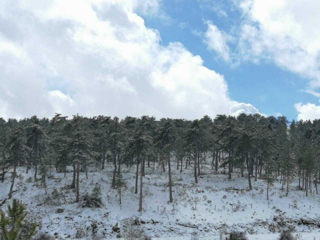 Eskişehir ve çevresinde hava sıcaklığının azalması sonucu yağışların kar olarak düştüğü Mihalıççık'ın ünlü mesire alanı Kalburcu yeniden beyaz örtüye büründü.