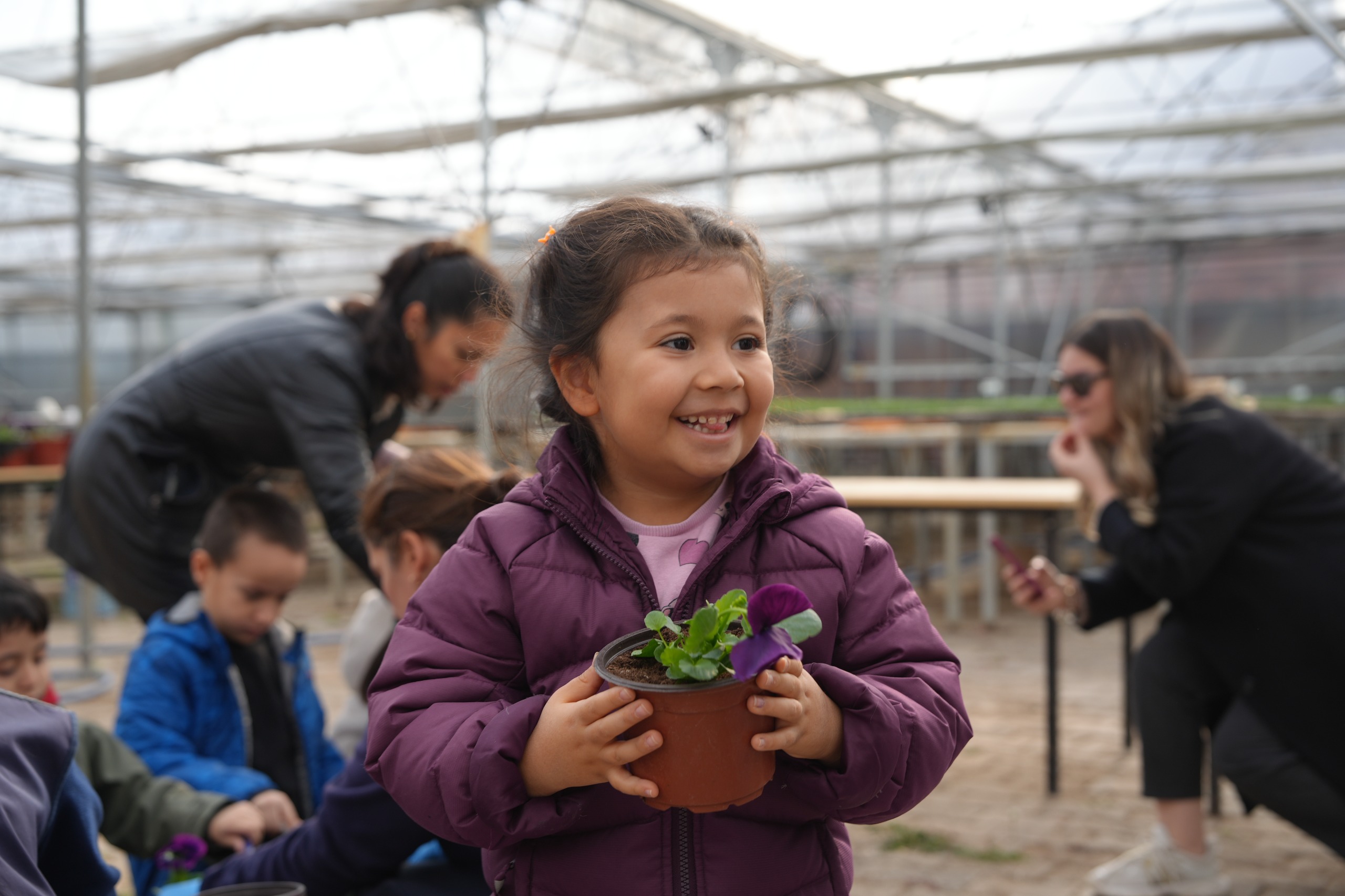 Park ve Bahçeler Dairesi Başkanlığı seralarında gerçekleştirilen uygulamalı eğitimlerde çocuklar, görevli personel eşliğinde çiçek dikimi yaptı. Yerel Tohum Merkezi’nde ise tohum çeşitleri, ekim ve sulama teknikleri ile fidelerin toprakla buluşturulma süreçleri anlatıldı. Minikler, tohum üretim alanlarını inceleme ve tohum bankasını tanıma fırsatı da buldu.