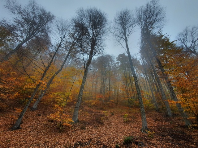 Eskişehir'e 120 kilometre uzaklıktaki Domaniç Ormanları yürüyüşümüz yer yer sisli, öğleden sonra tüm yürüyüş boyunca yağmur altında, sonbaharın renkleri, huzur dolu temiz havasında 1500 rakımda kolay bir rota da 12 kilometrelik etkinliğimizi sırılsıklam ıslansak da büyük keyif ile tamamladık.