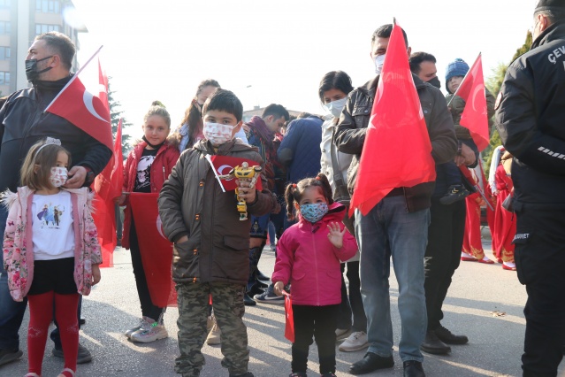 Türk Hava Kuvvetleri’nin ulusal akrobasi timi Türk Yıldızları, bulvar üzerinden uçarak korteje katılanları selamladı.