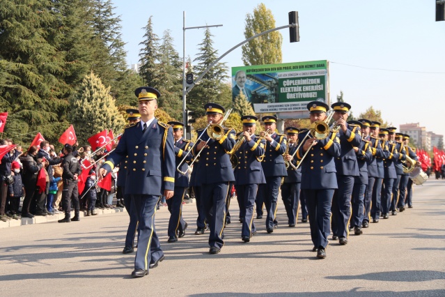 Cumhuriyetin ilan edilişinin 98’inci yıldönümü yurt genelinde coşkuyla kutlandı. Eskişehir’de de yüzlerce vatandaş 29 Ekim Cumhuriyet Bayramı’nı, düzenlenen törende korteje katılarak bayraklarla kutladı