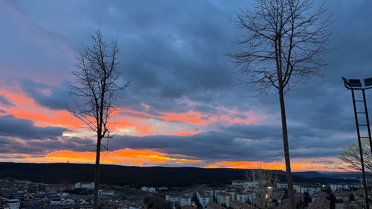 Gün batımı sırasında ortaya çıkan kızıl, turuncu ve mor tonlar, şehrin üzerine yumuşak bir ışık yayarak görsel bir şölen oluşturdu.