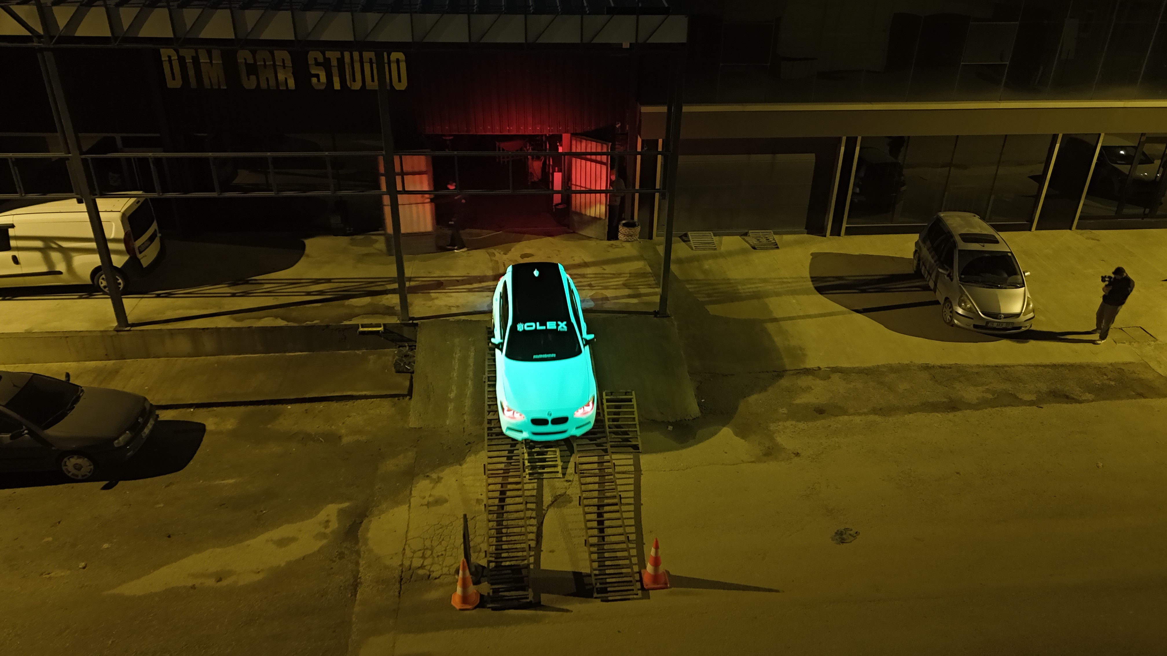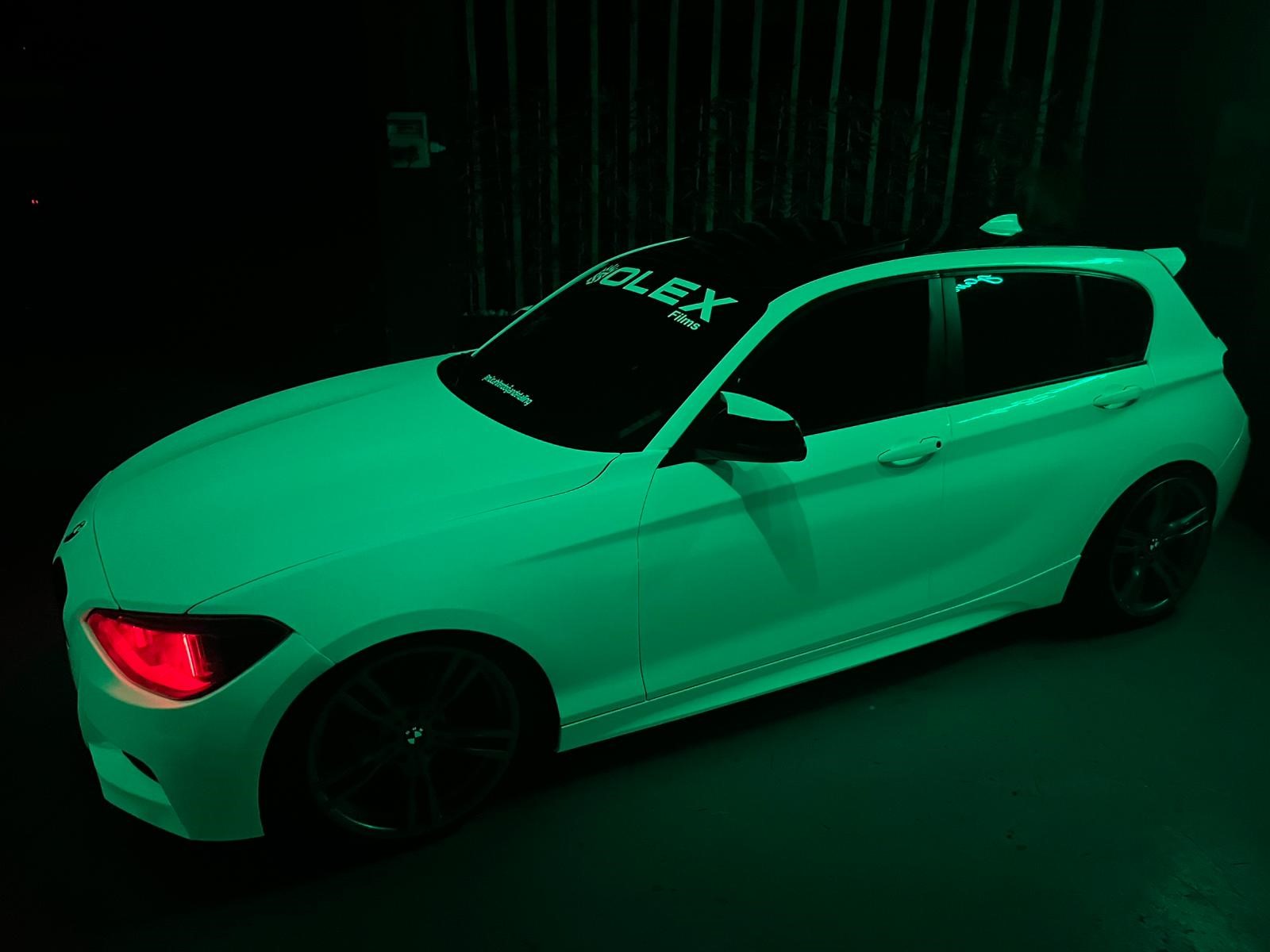 Erdoğan, kardeşine ait otomobili 210 mikron kalınlığında TPU PPF kaplama ile kapladı. Bu kaplamayı diğerlerinden ayıran en önemli özellik ise gündüz güneş ve yapay ışıkları depolaması, gece ise bu ışığı geri yansıtarak yeşil renkte parlaması. Şeffaf yapıya sahip kaplama sayesinde araç gündüz sedefli beyaz görünürken, karanlık ortamlarda belirgin şekilde neon yeşil bir renge dönüştü.