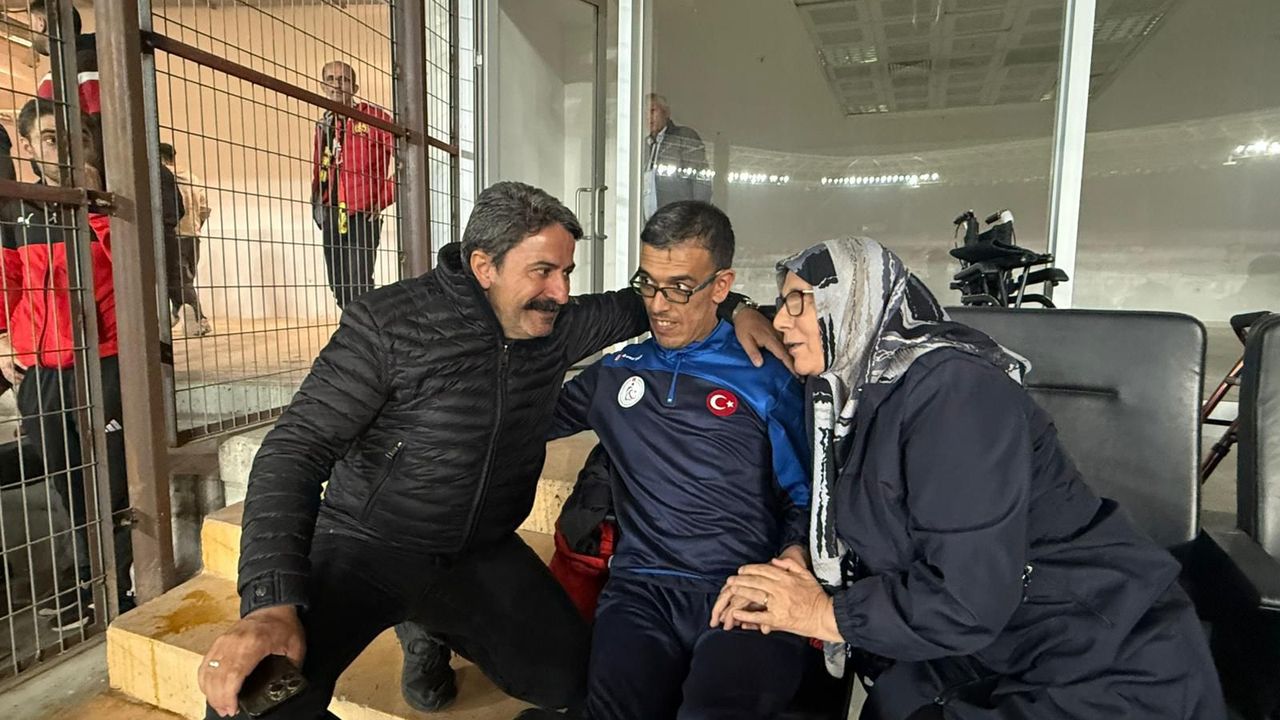Eskişehir Paralimpik Yüzme Milli Takımı sporcusu Mehmet Bakır Eğilmez, Eskişehirspor - Uşakspor karşılaşmasını Gençlik ve Spor İl Müdürü Hasan Kalın ile birlikte tribünden takip etti.