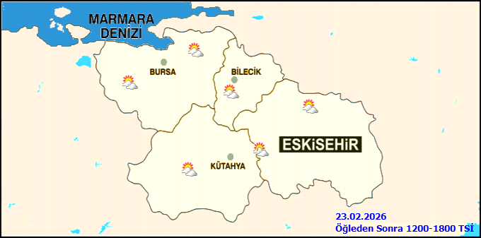Meteroloji Genel Müdürlüğü'nün verilerine göre, Eskişehir'de 23 Şubat Pazartesi günü Eskişehir'de parçalı bulutlu hava hakim olması bekleniyor.