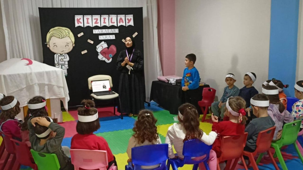 Kızılay gönüllüleri, küçük yaşta bilinçlendirme amacıyla Küçük kalplere iyiliğin gücünü anlatarak, Kızılay’ın yardımseverlik ve dayanışma ruhunu eğlenceli ve öğretici bir şekilde aktarıldı.