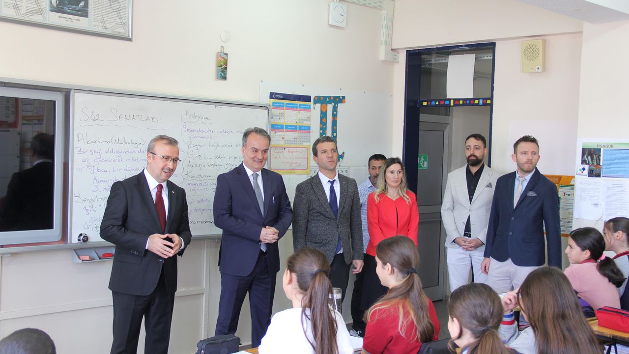 Sınıflarda rehberlik çalışmaları yürüten öğretmenlerle sohbet eden Müdür Aydın, eğitim-öğretim sürecine dair görüş alışverişinde bulundu. Okulun genel durumu, akademik başarı düzeyi ve yürütülen projeler hakkında yetkililerden bilgi aldı.
