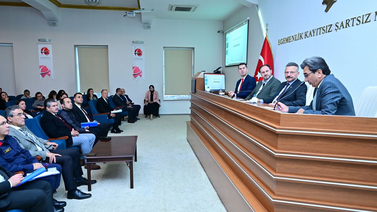 Eskişehir'de sağlık alanında yapılan çalışmaların değerlendirildiği toplantıda İl Sağlık Müdürlüğü görevlileri tarafından bilgilendirme sunumu yapıldı.