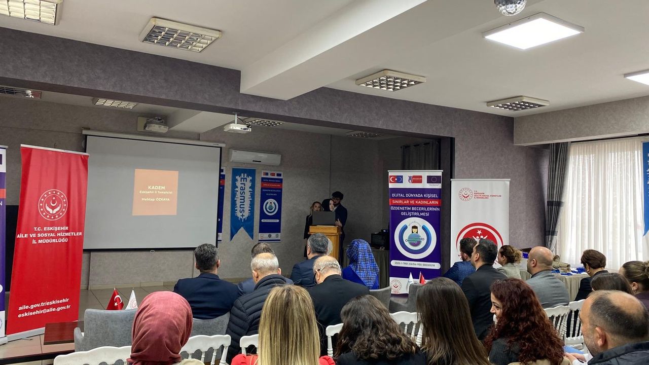 Programa konuşmacı olarak katılan KADEM Eskişehir İl Temsilcisi Mehtap Özkaya, sunumunda dijital mecralarda kişisel sınırların korunması, dijital farkındalık ve kadınların özdenetim becerilerinin güçlendirilmesine yönelik önemli bilgiler paylaştı. Özkaya, özellikle günümüz dijital dünyasında kadınların kendilerini koruyabilmeleri için farkındalık ve bilinçlenmenin gerekliliğine dikkat çekerek, sivil toplum kuruluşlarının bu alandaki rolüne vurgu yaptı.