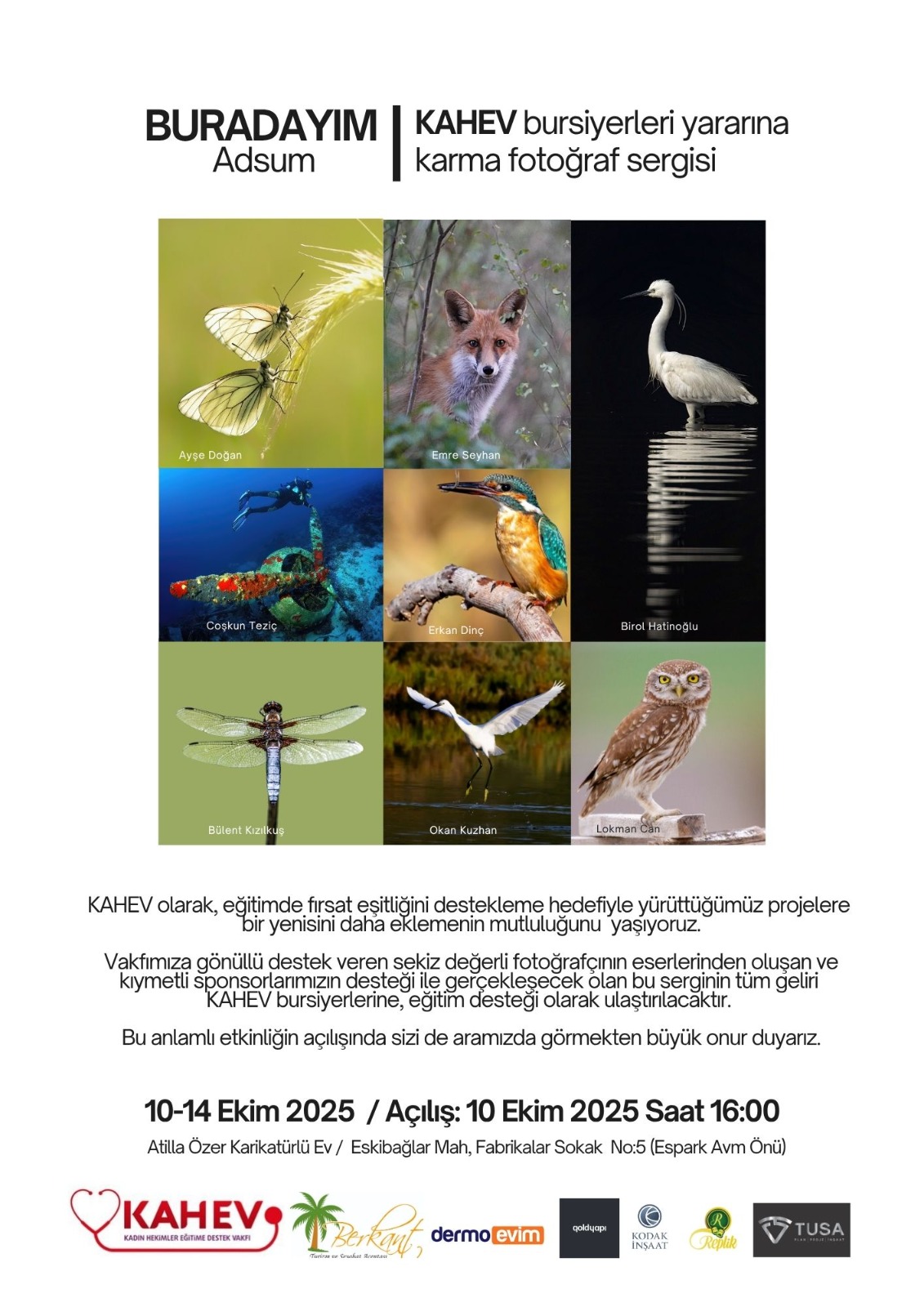 Sergi, Berkant Turizm, DermoEvim, Gold Yapı, Kodak İnşaat, Replik ve Tusa İnşaat sponsorluğunda gerçekleştiriliyor. Fotoğrafların satışından elde edilecek gelir, KAHEV’in burs ve eğitim projelerine aktarılacak ve böylece daha fazla öğrencinin aydınlık bir geleceğe ulaşmasına destek sağlanacak.