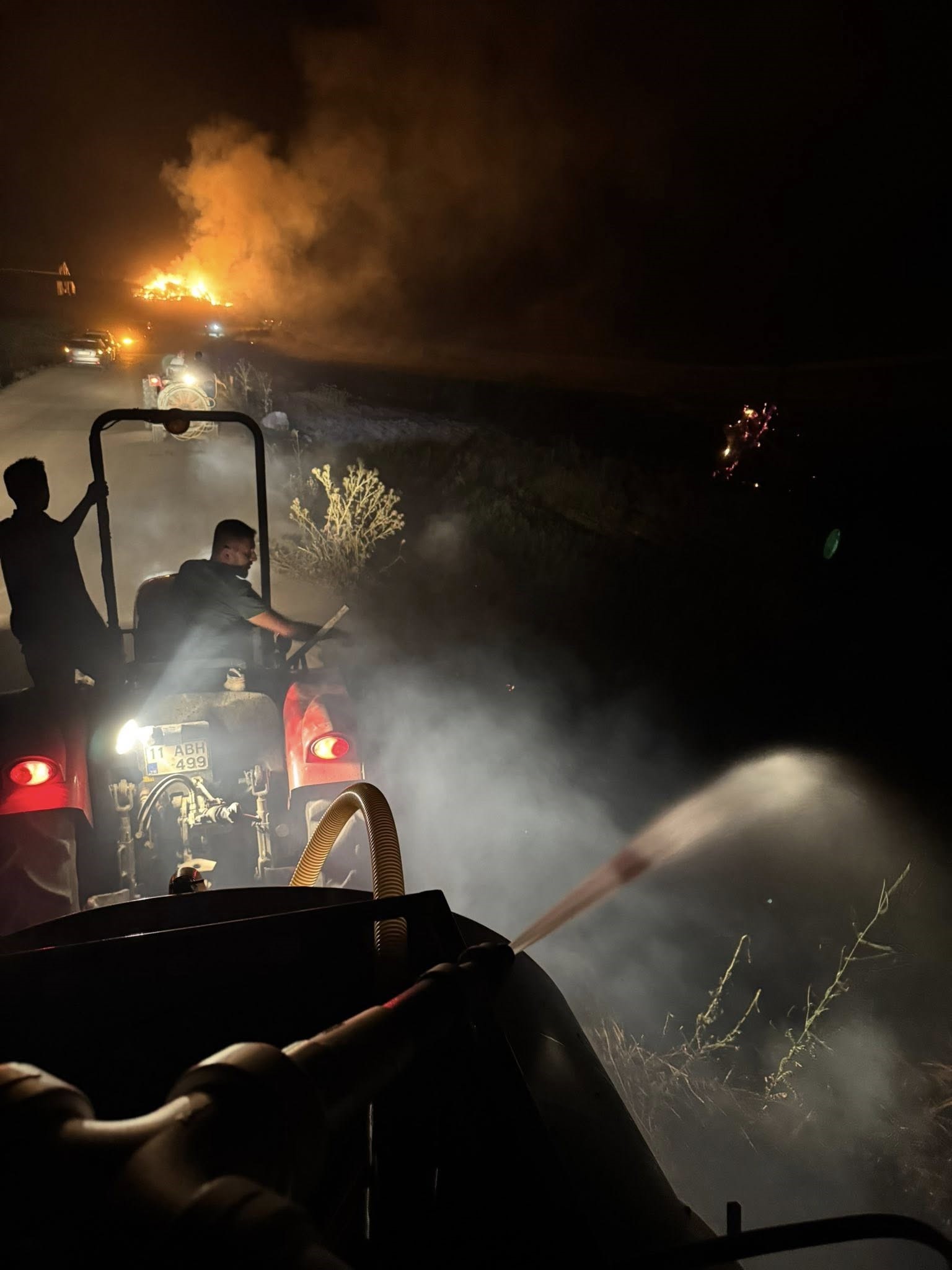 Bilecik'te tarım malzemeleri satan bir esnaf, tereddüt etmeden tüm araç ve ekipmanlarıyla orman yangınına müdahale etmek üzere yangın bölgesine giderek söndürme çalışmalarına destek verdi. Sakarya’nın Taraklı ilçesinde başlayan ve rüzgarın etkisiyle Bilecik’in Gölpazarı ilçesine sıçrayan orman yangını, 9 köyü etkisi altına almıştı. Üç gündür havadan ve karadan binlerce itfaiye personeli ve gönüllünün yoğun mücadelesiyle kontrol altına alınmaya çalışılan yangın, bu sabah etkili olan yağmur sayesinde kısmen kontrol altına alındı. Bölgede alevler yerini yoğun dumana bırakırken, yaklaşık 150 arazöz yerden soğutma çalışmalarını sürdürüyor.