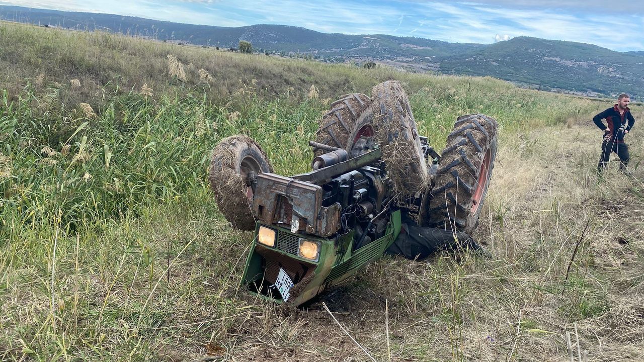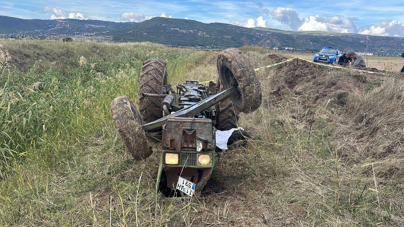 Edinilen bilgilere göre, Mehmet Kıraç (78) tarlasını sürdüğü sırada bir anlık dikkatsizlik sonucu 11 AH 591 plakalı traktörü su kanalına devrildi.