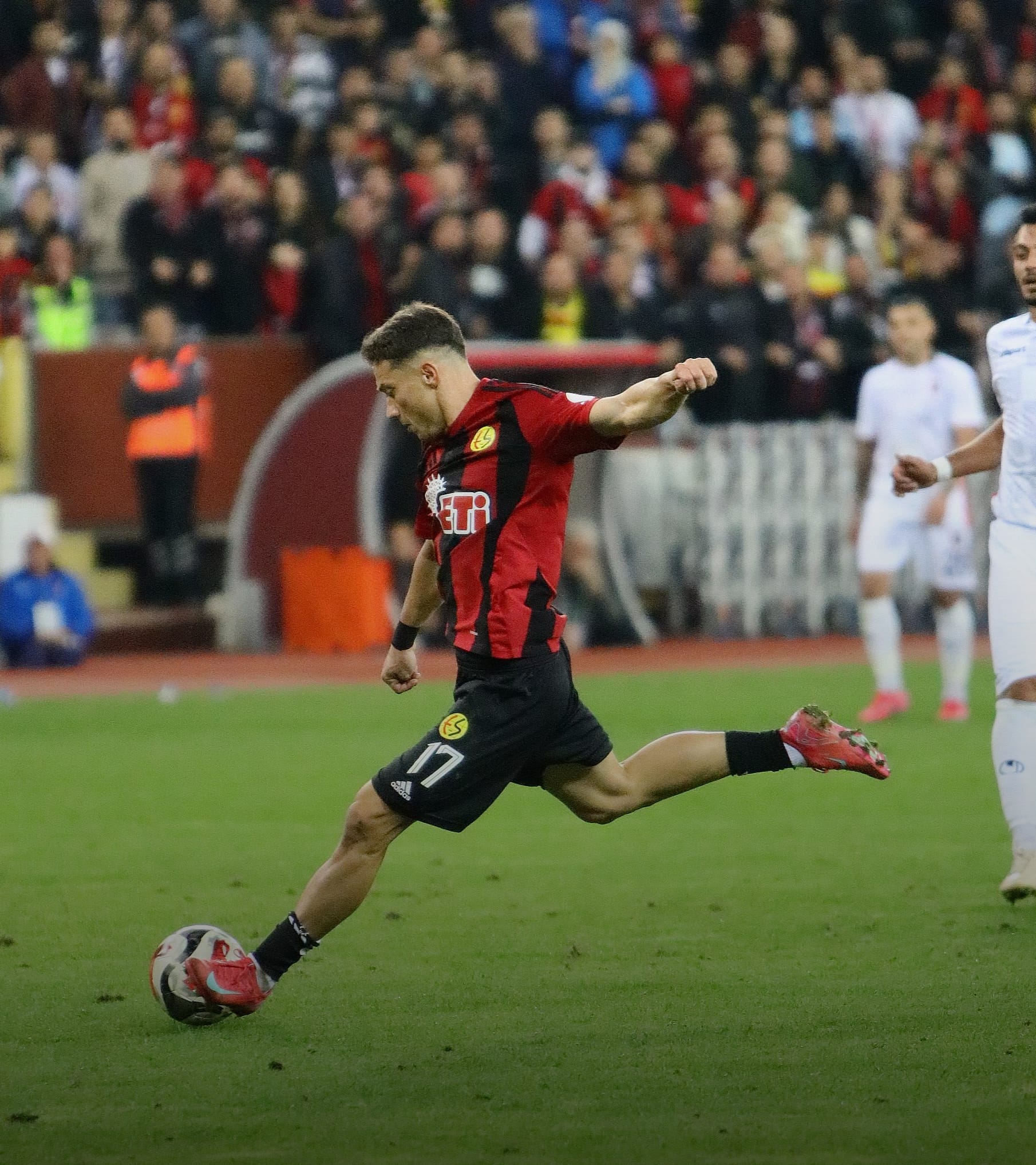 Muğla Bölgesi Hakemi Tayfun Sarı’nın düdüğü, Eskişehirspor’un vuruşu ve tribünleri dolduran muhteşem Eskişehirspor taraftarının arma ve renklere verdiği destekle başlayan mücadelede, Şimşekler maçın 2.dakikasında penaltı kazandı.