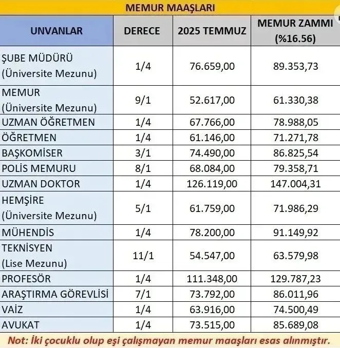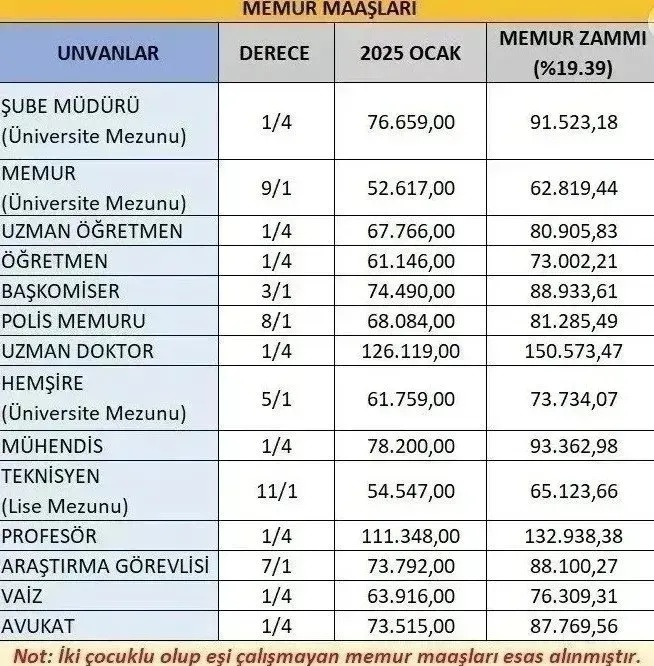 Olası zam oranları üzerinden yapılan projeksiyonlar, farklı meslek gruplarındaki memurların yeni maaşlarını da ortaya koyuyor. En düşük memur maaşının ne kadar olacağı, polis, öğretmen, hemşire ve doktor gibi meslek gruplarının ne kadar zam alacağı merak konusu. Yaklaşık yüzde 20'lik bir artış senaryosunda, en düşük memur maaşının önemli bir seviyeye ulaşması bekleniyor. Ancak kesin rakamlar, kasım ve aralık aylarındaki aylık enflasyon rakamlarının açıklanmasıyla netleşecek. Milyonlarca memur, 3 Ocak 2026 tarihinde açıklanacak aralık ayı enflasyonuyla birlikte yeni maaşlarını tam olarak öğrenebilecek.