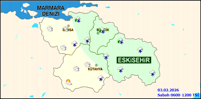 RÜZGAR: Kuzey ve batı yönlerden orta kuvvette, Eskişehir ve Kütahya'nın güney kesimleri ile Bursa'nın kuzeybatı kesimlerinde ve Marmara Denizinde bu akşam saatlerinde zaman zaman kısa süreli kuvvetli(30-60 km/saat) esmesi beklenmektedir.