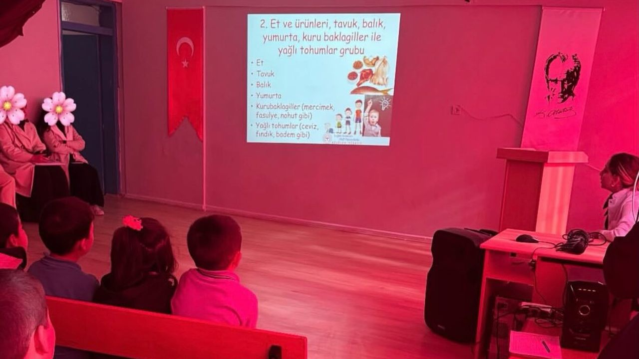 Eğitim kapsamında öğrenciler, dengeli beslenmenin önemi, fast food ve hazır gıdaların sağlık üzerindeki olumsuz etkileri ile obezite riskleri konusunda bilgilendirildi. Ayrıca düzenli fiziksel aktivitenin sağlıklı yaşam üzerindeki etkileri anlatılarak, çocukların günlük yaşamlarında aktif olmalarının önemi vurgulandı.
