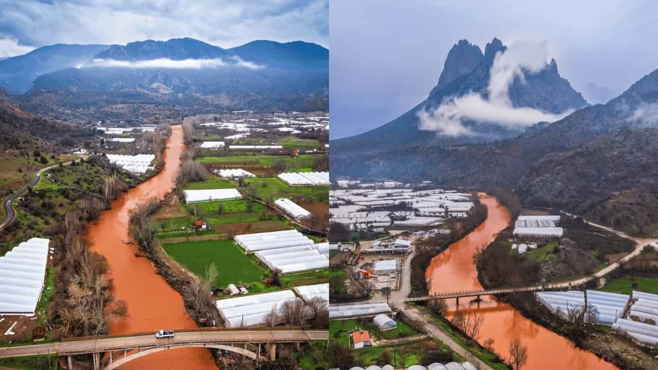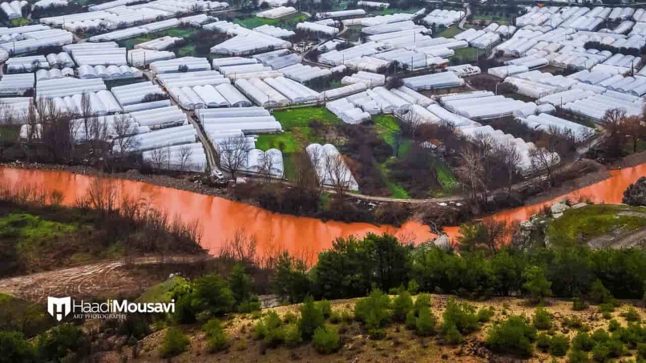 Kısa sürede kızıl renge dönen nehir suyu fotoğrafçı Hadi Mousavi tarafından fotoğraflandı.