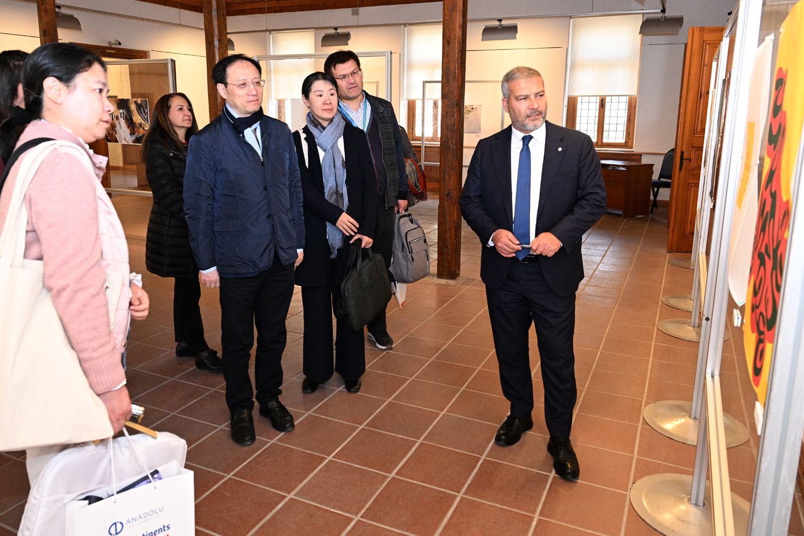 Akademik ziyaretlerin ardından Çinli akademisyenler, Anadolu Üniversitesi Çağdaş Sanatlar Müzesi’ni gezdi. Güzel Sanatlar Fakültesi Dekanı Prof. Dr. Duygu Kahraman eşliğinde gerçekleştirilen ziyarette misafirler, “17. Uluslararası Anadolu Kaligrafi ve Tipografi Etkinliği” kapsamında açılan sergide yer alan eserleri inceleme fırsatı buldu.