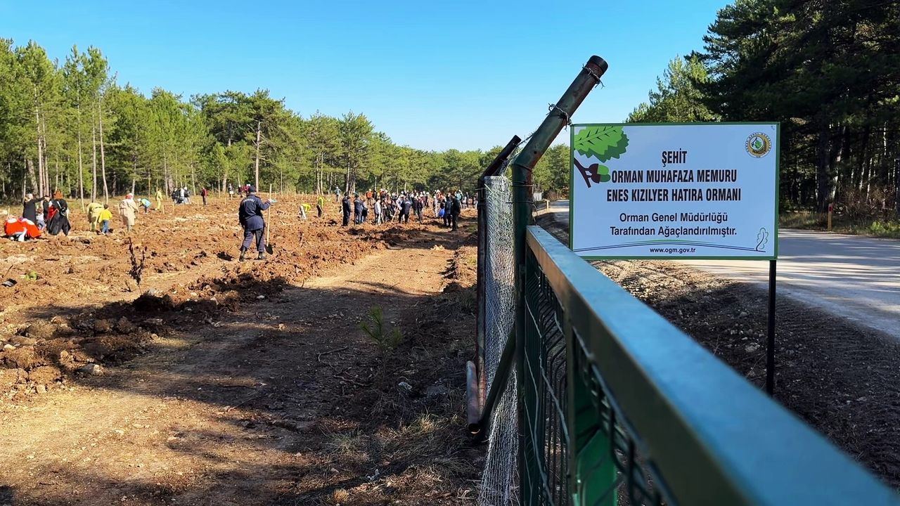 Şehit düşen orman işçisi Enes Kızılyer’in adını yaşatmak amacıyla oluşturulan hatıra ormanına protokol üyeleri, öğrenciler ve vatandaşlar tarafından fidan dikimi gerçekleştirildi. Kızılyer’in adını taşıyan çeşme ise dualarla açıldı.