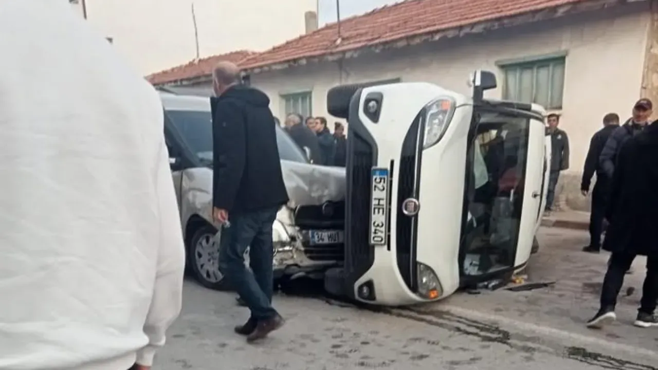 Otomobillerden birinin diğerine yandan çarpması sonucunda meydana gelen kazada, aracın biri yan yattı. Araçların ikisinde de maddi hasar meydana geldiği görüldü.