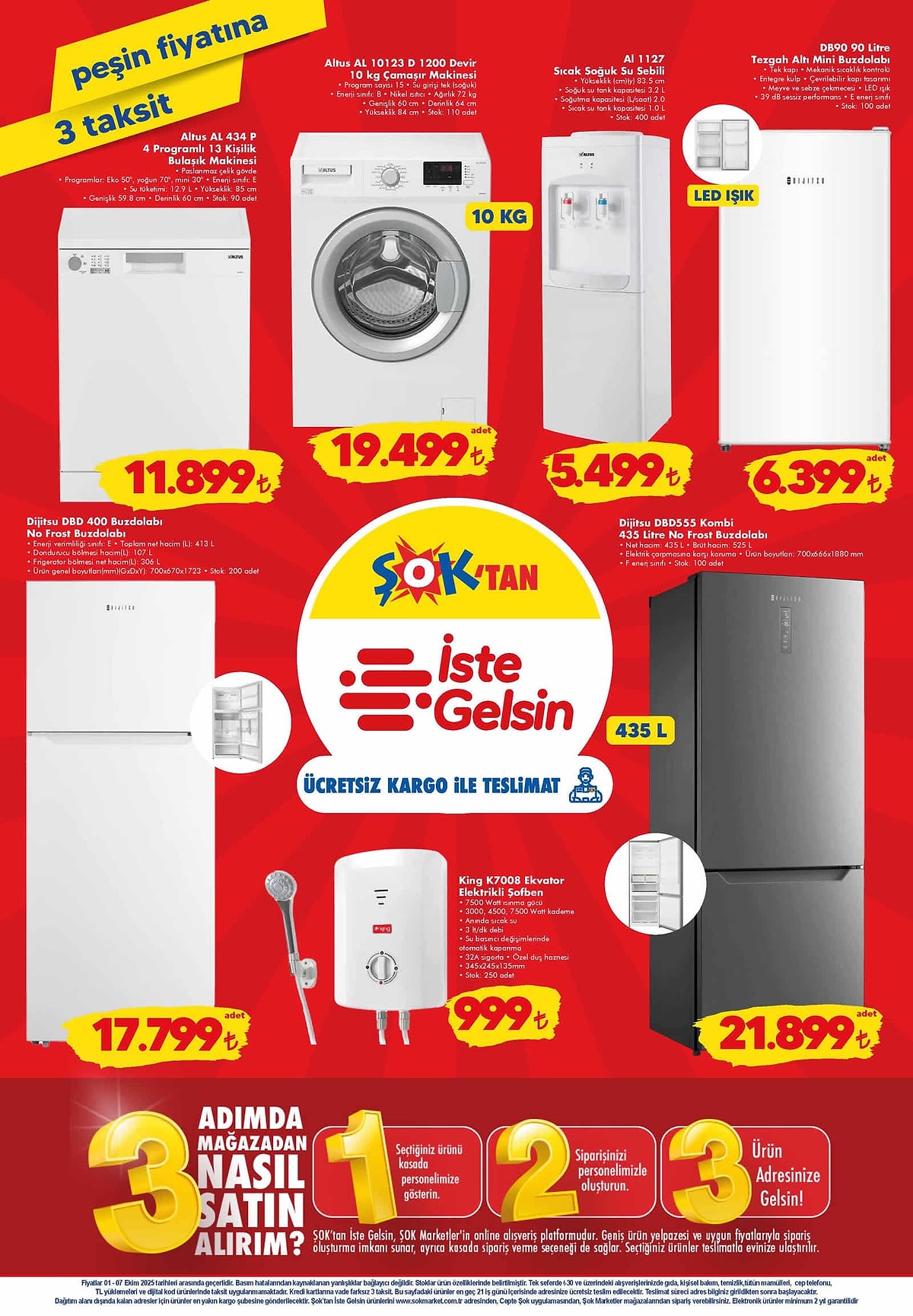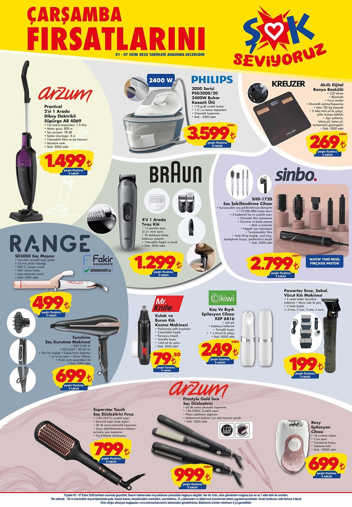 Haftalık indirimleriyle tüketicilerin ilgisini çeken ŞOK, bu hafta da çeşitli ürün gruplarını kampanya kapsamına aldı. Yeni katalogda küçük ev aletlerinden kişisel bakım ürünlerine, mutfak eşyalarından tekstil fırsatlarına kadar geniş bir yelpazede seçenekler yer aldı. İndirimli fiyatlarla satışa sunulan ürünler sınırlı stoklarla market raflarında tüketicilerle buluşacak. Listede öne çıkan ürünler uygun fiyat arayışındaki müşterilerin ilgi odağı oldu. Özellikle ev gereçleri ve beyaz eşyada dikkat çekici fırsatlar sunuldu.