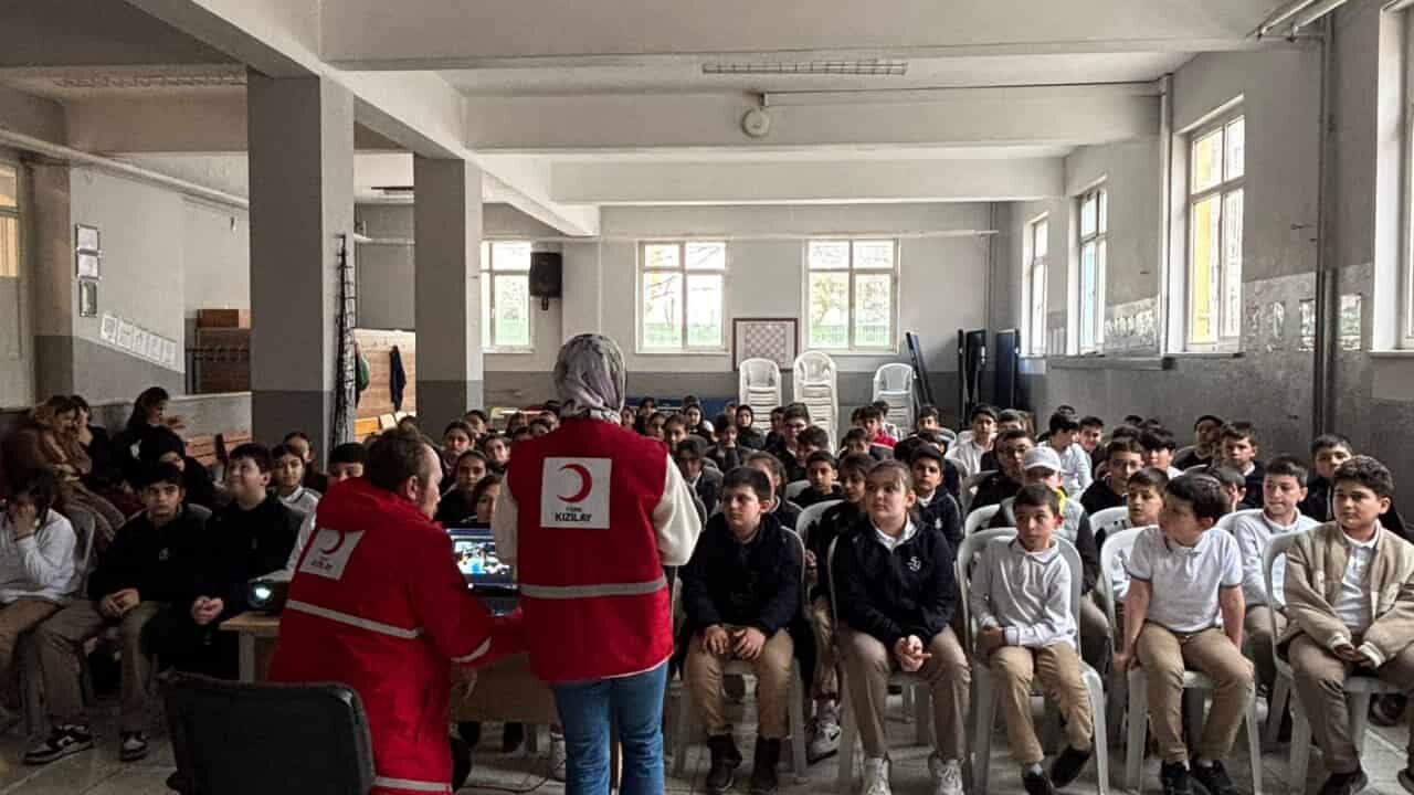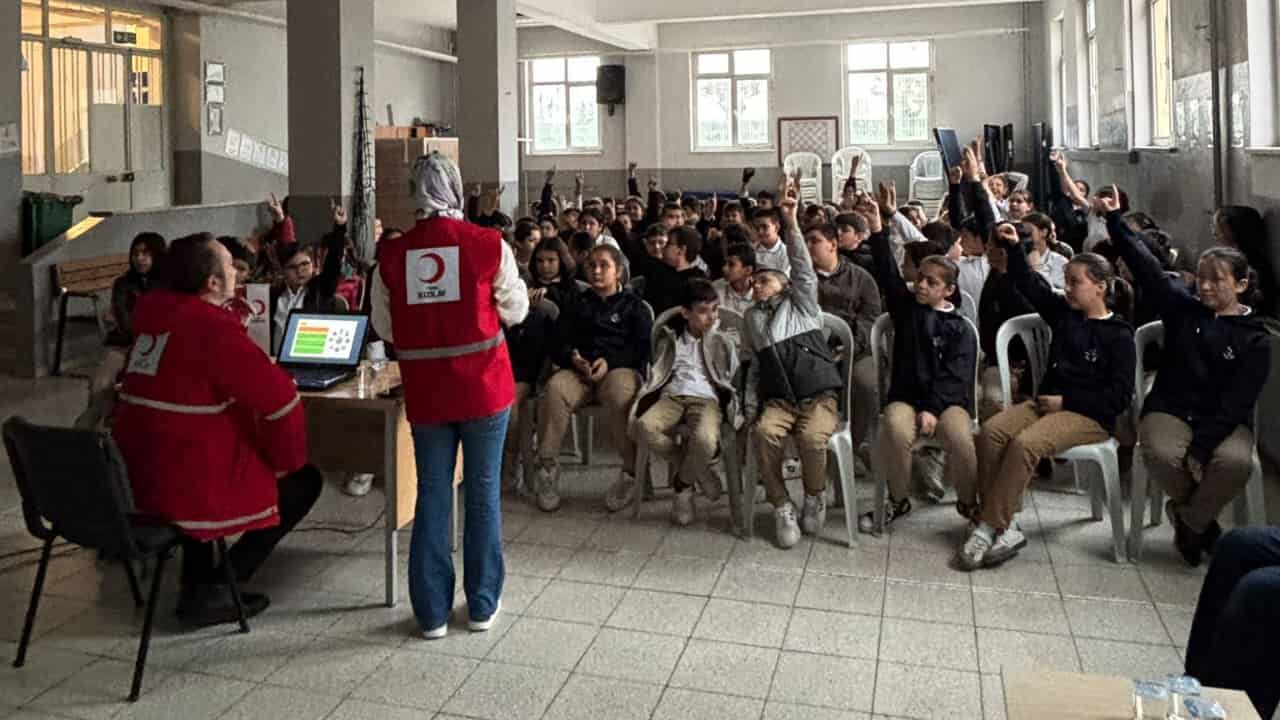 Türkiye Kızılay Derneği Tepebaşı Şubesi tarafından verilen seminerde, öğrencilerin çevre farkındalığını artırmak ve afetlere karşı bilinç kazanmalarını sağlamak amaçlandı.