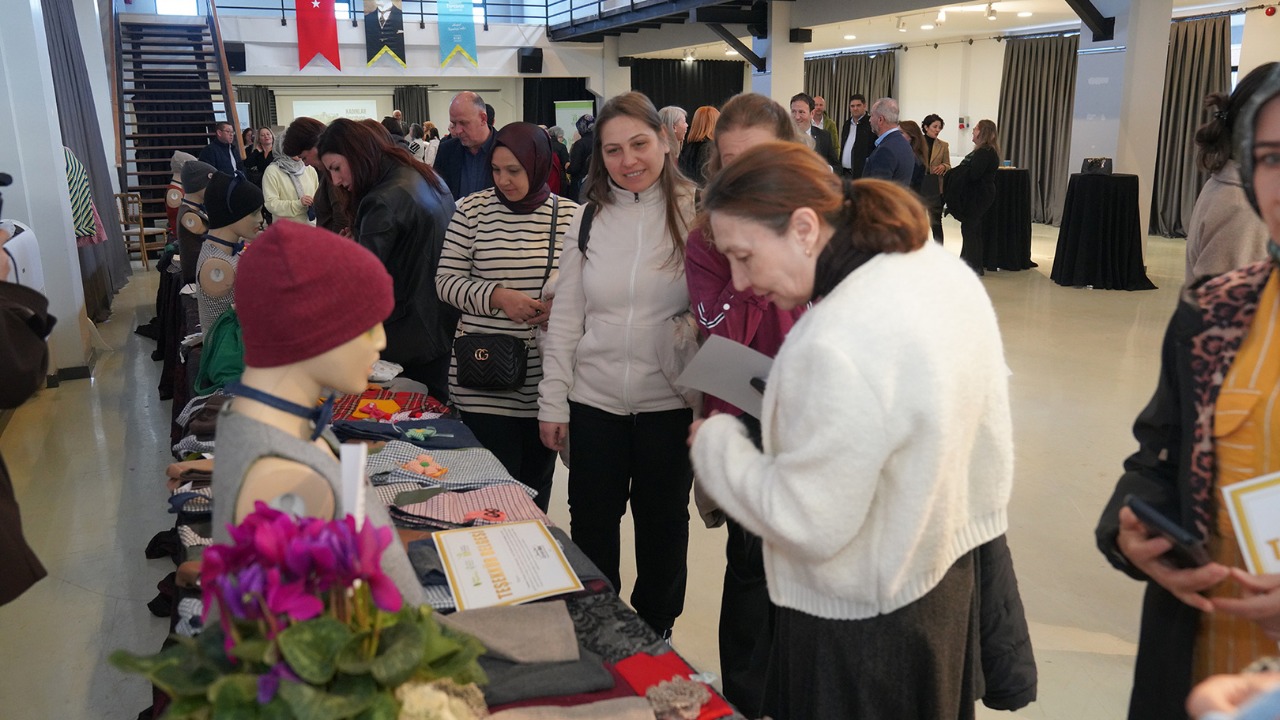 Gönüllü eğitmenler ve kadınlar, proje boyunca yaşadıkları deneyimleri ve kazandıkları becerileri davetlilerle paylaşırken, tekstil desteği sağlayan firmalar da projeye katkı sunmaktan duydukları memnuniyeti dile getirdi. Başkan Yardımcısı Yalnızoğlu, tüm paydaşlara teşekkür ederek belgelerini takdim etti. Davetliler daha sonra geri dönüştürülmüş malzemelerden üretilen ürünleri inceleme fırsatı buldu.