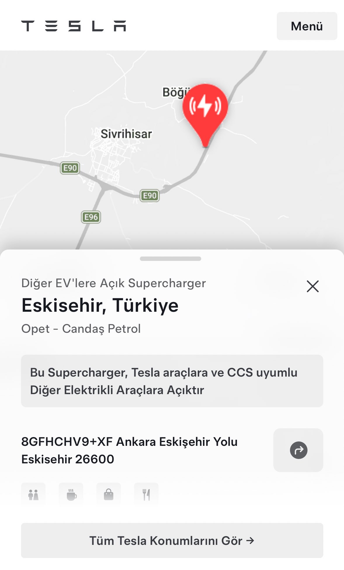 Sivrihisar, Eskişehir Supercharger açıldı! Hayırlı olsun. Ayrıca Tesla Supercharger fiyatıyla da şu an çok avantajlı konumda. Hatta sadece Tesla’lar için değil, diğer EV sahipleri için de mantıklı. İstasyon yoğunluğu artacaktır önümüzdeki günlerde. Elektrik fiyatlarına da zam geldikten sonra, burada da bir zam beklenmesi mantıksız olmayacaktır. Sizce 2026 ilk yarısı için olması gereken makul fiyatlandırma nasıl olmalı? Hem Tesla araçlar için hem diğer marka için fiyat tahmininizi yazın. Şu anki Tesla fiyatları Tesla Sahipleri İçin Şarj Ücretleri: 9.40 TL/kWh Diğer EV'ler İçin Şarj Ücretleri: 11.70 TL/kWh