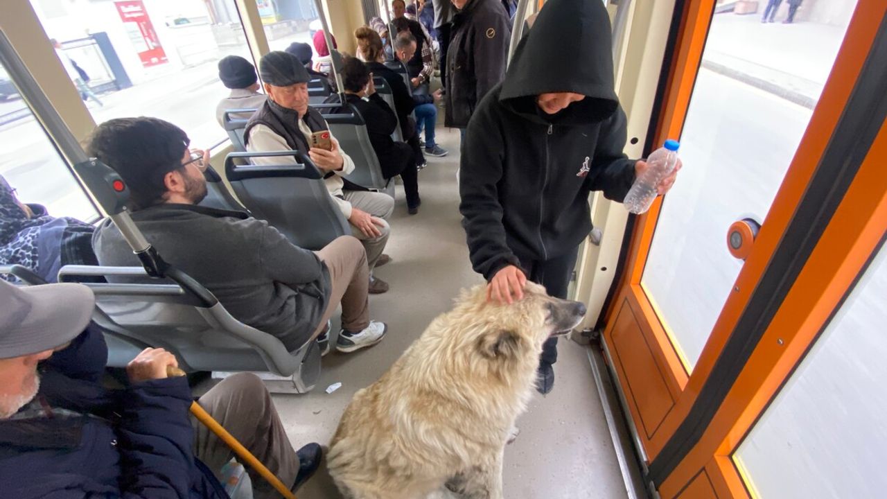 Eskişehir'de SSK-Otogar tramvay hattında sefer yapmakta olan tramvaya sokak köpek bindi. Vatandaşlarla seyahat eden köpek ilgi odağı olurken, bir çocuk köpeğin başından uzun süre ayrılmadı ve ilgilendi.