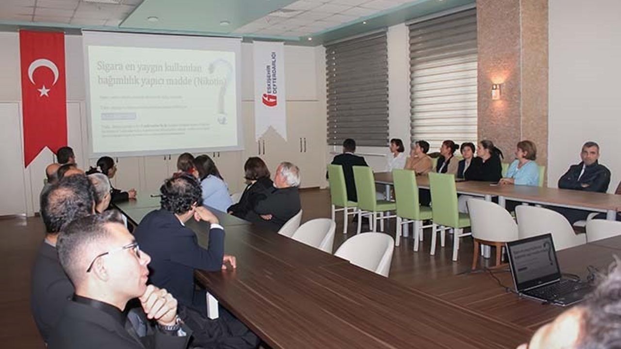 Eskişehir İl Sağlık Müdürlüğü, toplumda tütün kullanımını azaltmak ve bireylerin sigarayı bırakma süreçlerini desteklemek amacıyla 18 Kasım 2025 tarihinde Eskişehir Defterdarlığında Dr. Pakize Gizem TOPÇU tarafından “Tütün ve Tütün Ürünlerinin Zararları” konusunda bilgilendirme eğitimi düzenledi.