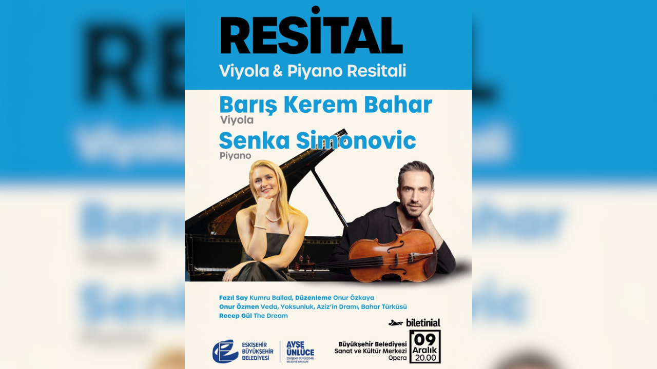 Eskişehir’de müzikseverleri büyüleyecek özel bir konser düzenleniyor. Uluslararası arenada başarılı performanslarıyla tanınan viyolacı Barış Kerem Bahar ve deneyimli piyanist Senka Simonovic, Eskişehir’de aynı sahneyi paylaşarak unutulmaz bir resitale imza atacak.