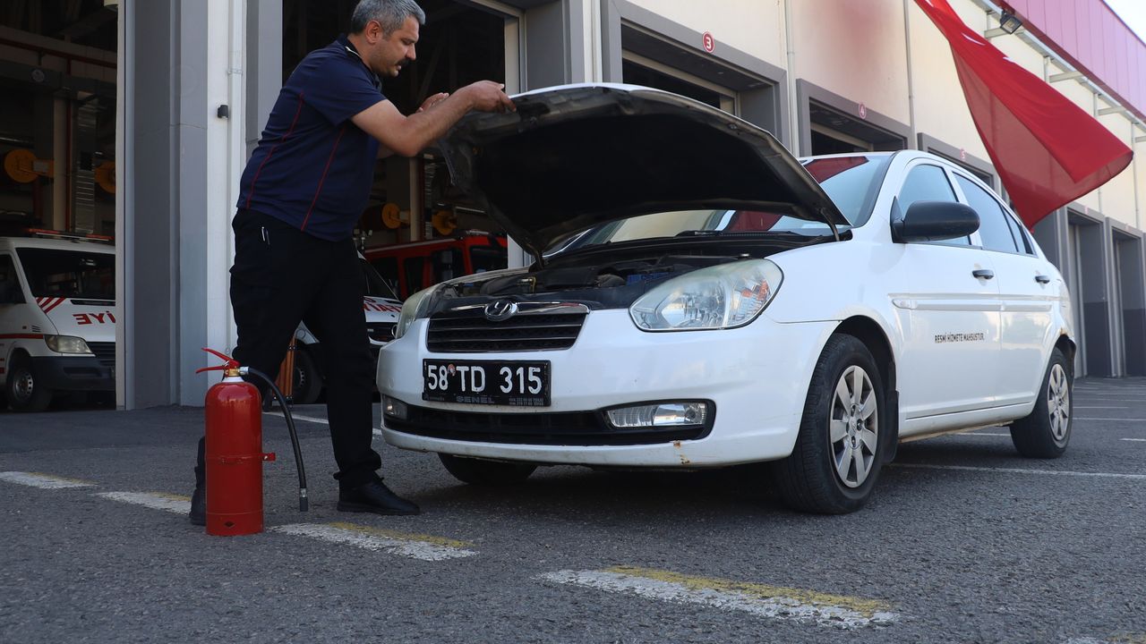 Türkiye genelinde mevsim normallerinin üzerinde seyreden hava sıcaklıkları, günlük yaşamı olumsuz etkilemeye devam ediyor. Özellikle son günlerde termometrelerin 30 dereceyi aştığı Sivas'ta, aşırı sıcaklar beraberinde ciddi tehlikeleri de getiriyor. Açık alana bırakılan araçlar adeta fırına dönüşürken, kavurucu sıcakların etkisiyle araçlarda meydana gelen yangınlarda da ciddi artış yaşanıyor. Özellikle LPG'li ve elektrikli araçlar bu dönemde daha büyük risk taşıyor. Konuya ilişkin açıklamalarda bulunan Sivas Belediyesi İtfaiye Müdürü İbrahim Alaçam, yaz aylarında araç yangınlarına karşı daha dikkatli olunması gerektiğini vurgulayarak, "Araç yangınlarında kaput açıldığı zaman hava ile temas olacağı için alev parlayacak ve daha da büyüyecektir. Hava ile müdahale yangındaki alevlenmeyi arttırır" dedi.