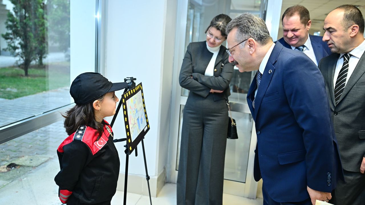 Program, fuaye alanında açılan Çocuk Gözüyle Polis adlı resim ve ebru sergisinin gezilmesiyle başladı. Vali Aksoy ve İl Emniyet Müdürü Yılmaz, anaokulu öğrencilerine hediyelerini takdim etti.