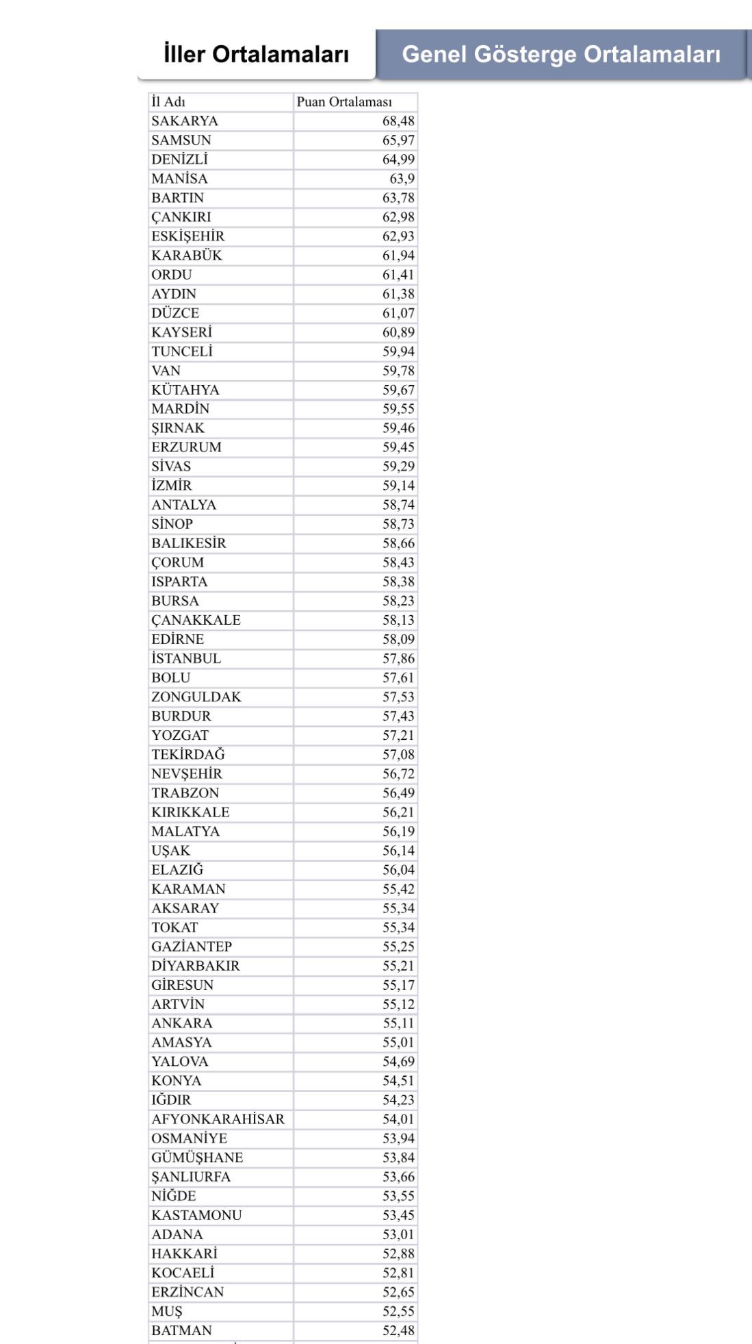 Eskişehir, 81 il arasında 62,93 puan alarak 7. sırada yer aldı.