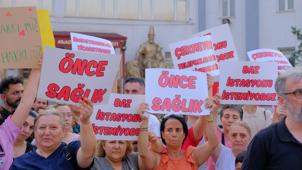 Eskişehir’in Büyükdere Mahallesinde bulunan ve cemevi olarak da kullanılan Eskişehir Hacı Bektaş Anadolu Kültür Vakfı binasının çatısına baz istasyonu yerleştirildi. Aile sağlığı merkezi ve eczanenin de bulunduğu binaya baz istasyonu kurulmasına tepki gösteren mahalle sakinleri, sağlıklarının tehlikede olduğunu ifade etti. Cemevinin önünde toplanan mahalle sakinleri yaptıkları eylem ile baz istasyonu istemediklerini söyledi. “Baz istasyonu istemiyoruz” sloganlarını atan mahalle sakinleri, Vakıf yönetimine seslendi ve baz istasyonunun bir an önce kaldırılmasını talep etti.