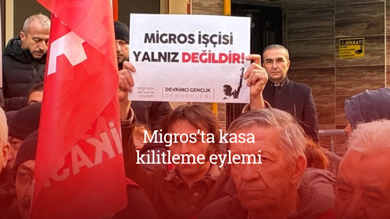 Migros depo işçilerinin sendikal hak mücadelesine destek vermek amacıyla DİSK’e bağlı Nakliyat-İş Sendikası tarafından basın açıklaması yapıldı. Açıklamanın ardından bir Migros mağazasında kasa kilitleme eylemi gerçekleştirildi, mağaza içinde kısa süreli gerginlik yaşandı.
