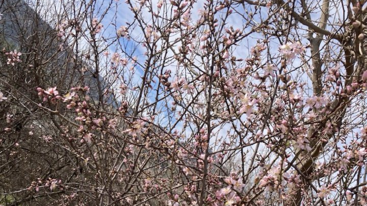 Eskişehir Sarıcakaya ilçesinde yalancı bahara aldanan badem ağaçları kış ortasında çiçek açtı.