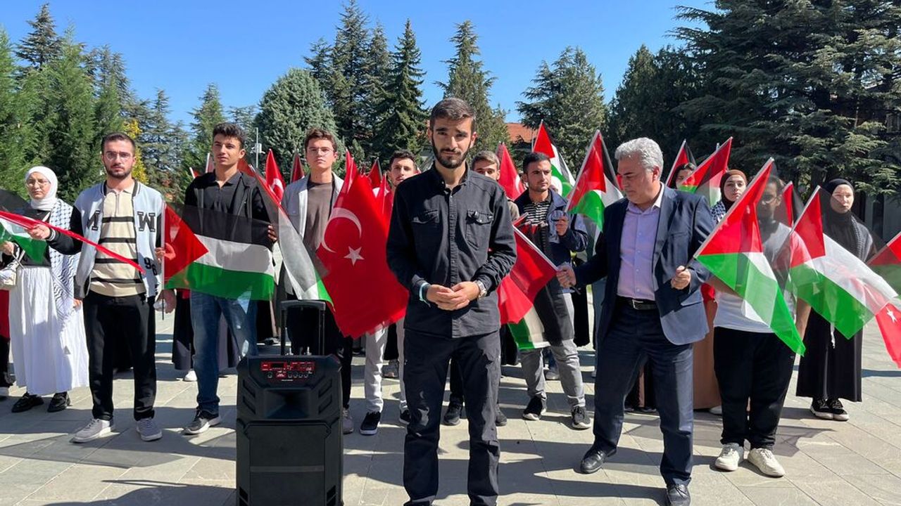 Yunus Emre Uluslararası Öğrenci derneği adına Emirhan Çıtak tarafından "Sumuda Destek, Gazze'ye Umut Ol" başlıklı bildiri okundu. Bildiride, "Gözlerimizin önünde yaşanan tarihin en karanlık sınavlarından biriyle karşı karşıyayız. Filistin topraklarında yaşanan bu işgal, baskı ve zulüm tüm insanlığı ilgilendiren vicdani bir meseledir" ifadelerine yer verildi.